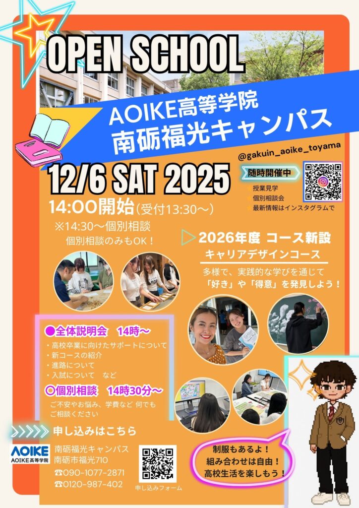 【AOIKE高等学院】南砺福光キャンパス、オープンスクール開催